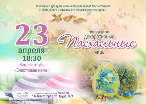 В центре музыкального образования "Камертон" состоится мастер-класс по изготовлению декоративных пасхальных яиц.