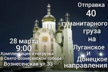В эту субботу, 28 марта, с 9 утра в Храме Свято-Вознесенского собора по адресу: ул. Вознесенская, 33 начнётся комплектация и погрузка 40-го гуманитарного груза в автотранспорт. Это один из самых ответственных моментов. Чтобы груз выдержал долгую сложную дорогу и дошел до адресатов без повреждений, очень важно правильно его распределить и надежно закрепить в машине. А для этого нужны надёжные и сильные руки. Желающим помочь здесь будут рады.