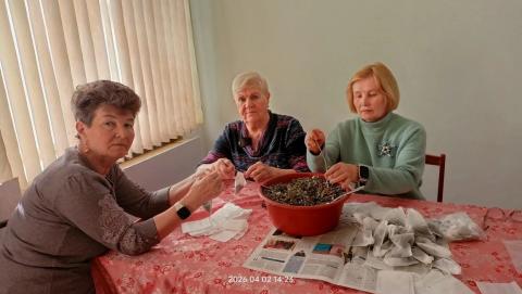 На этот раз активисты ТОС 0202 подошли к помощи особенно душевно. Они занялись приготовлением витаминного чая для солдат. Листья смородины, малины, душицы и мяты участники акции вручную раскладывали по фильтр-пакетам и аккуратно упаковывали в коробочки.