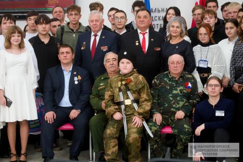 Патриотический диалог с молодёжью вели депутат городского Собрания Виктор Токарев, первый заместитель председателя Совета ветеранов Василий Муровицкий, участник боевых действий на Северном Кавказе, ветеран танковых войск полковник в отставке Антон Дадаев, участник боевых действий, руководитель военно-патриотического клуба «Звезда» Алексей Ноздрачёв, участник специальной военной операции Александр Щитиков.