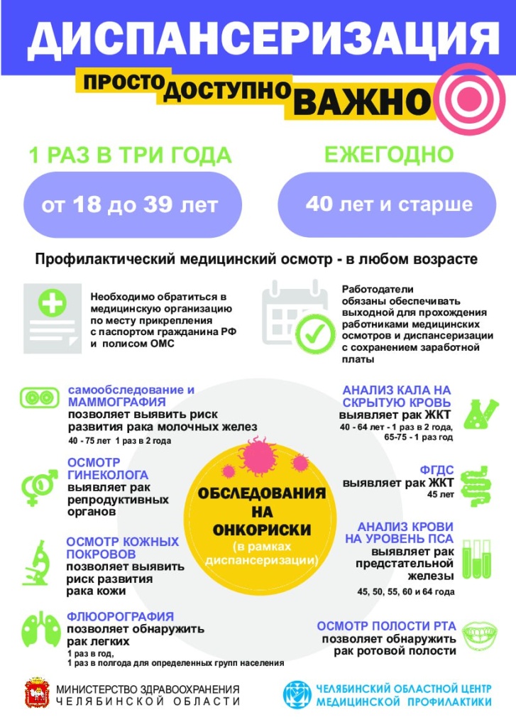 Под диспансеризацией населения подразумевают комплекс медицинских мероприятий, направленных на диагностику и обследования основных показателей состояния здоровья человека. Комплексный врачебный осмотр в поликлинике, а также проведение анализов дают возможность выявить ряд заболеваний, которые являются причиной 70% смертей граждан. Сюда относятся: онкологические заболевания, сердечно-сосудистые болезни, сахарный диабет, болезни дыхательных органов.