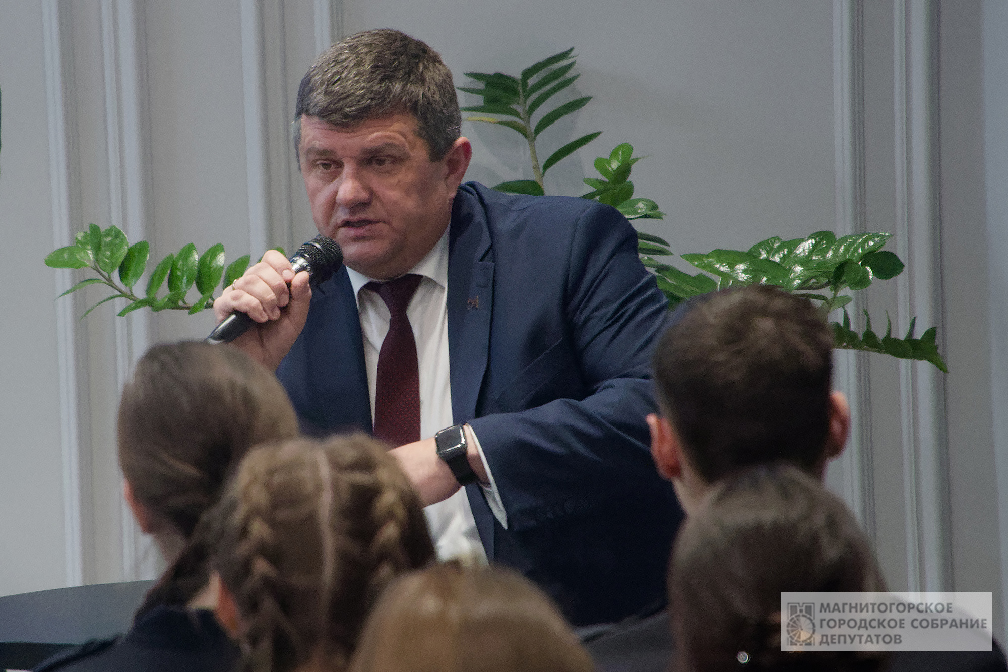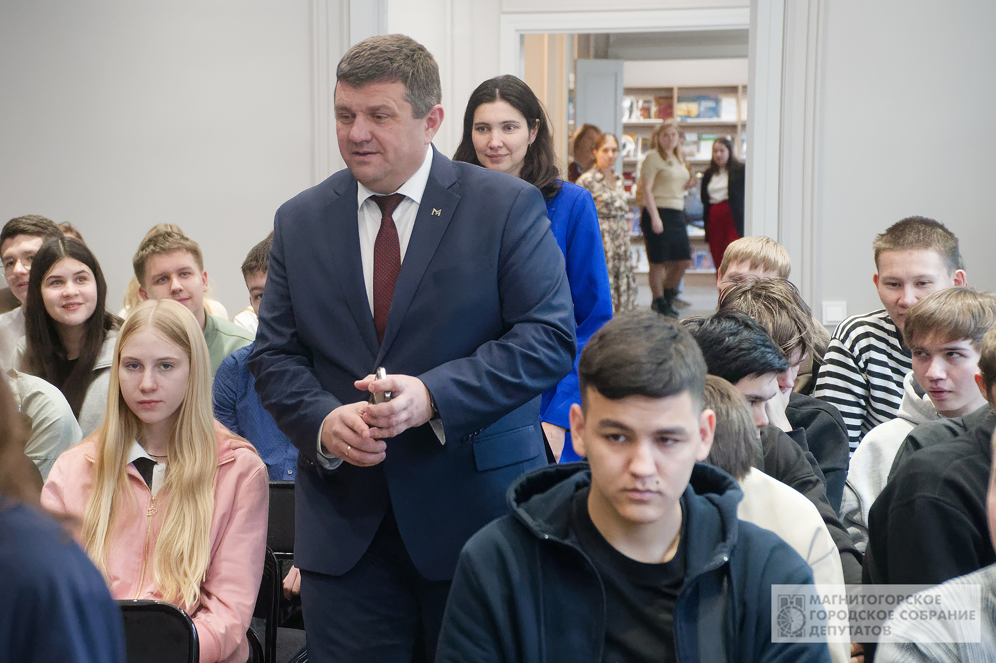 На этот раз пообщаться с молодежью пришел Алексей Бельтюков, директор благотворительного фонда «Металлург», депутат МГСД, председатель депутатской комиссии по социальной политике и связям с общественностью.