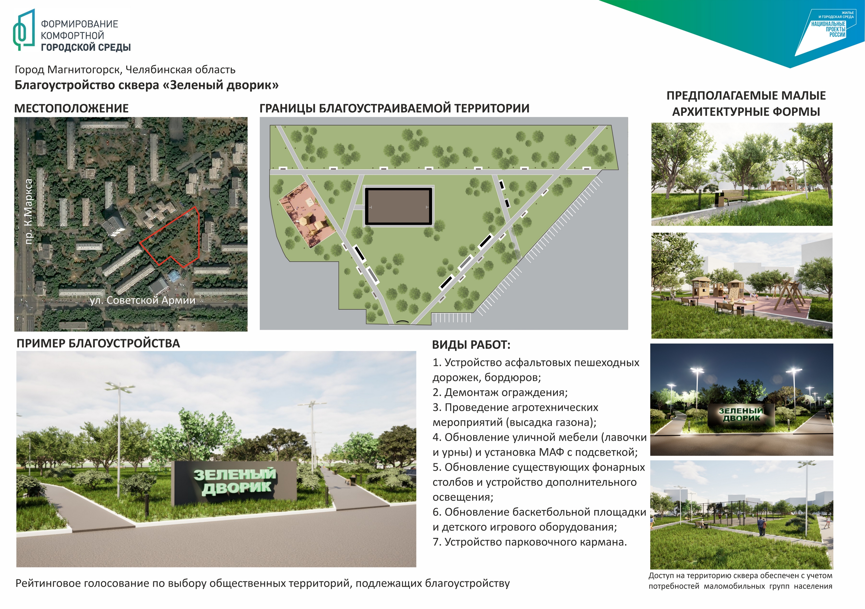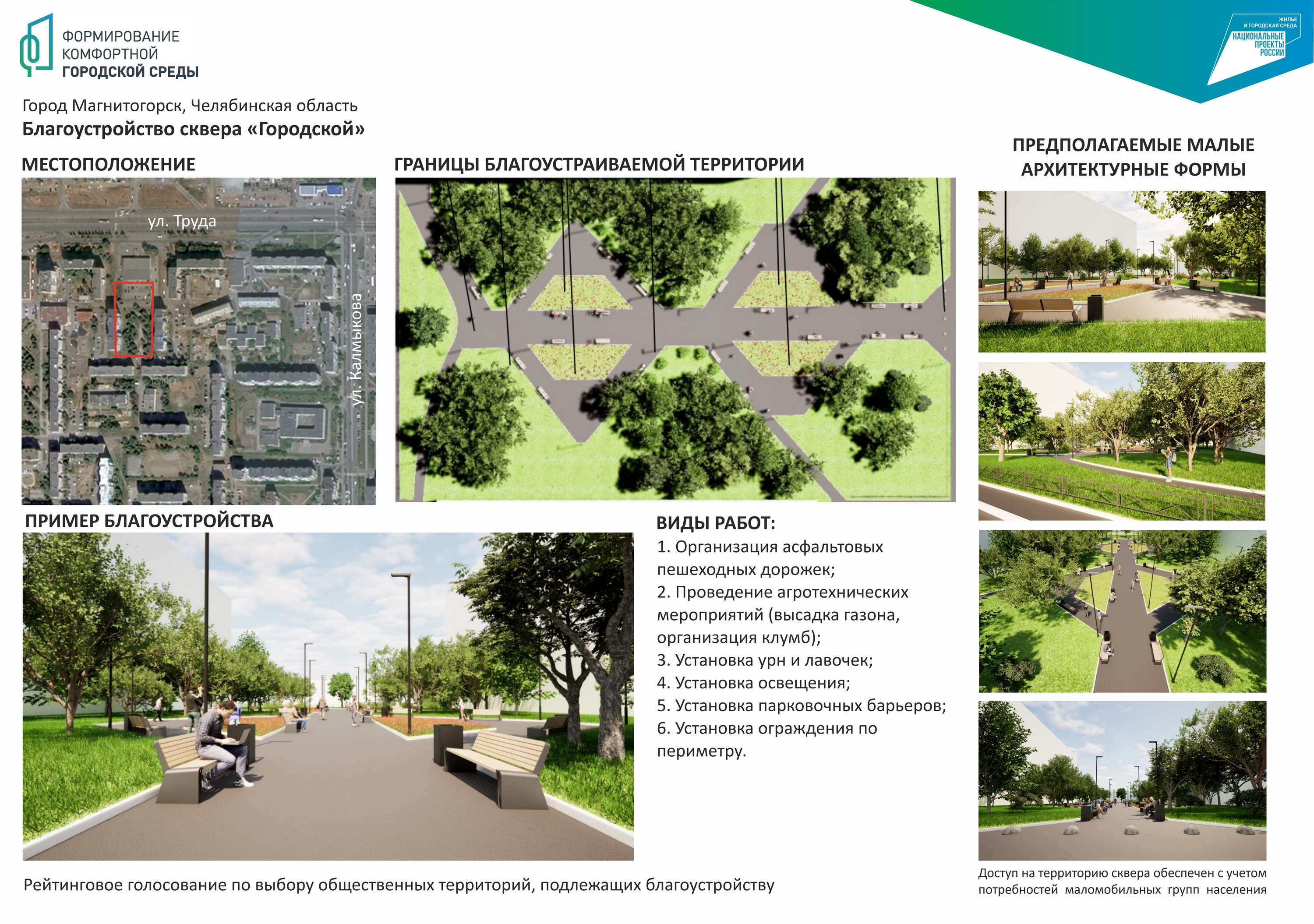 Справка: проект «Формирование комфортной городской среды» реализуется по всей стране, в том числе в Магнитогорске, по инициативе партии «Единая Россия» уже десятый год. Благодаря ему в нашем городе заметно преобразились 16 территорий. В том числе парк у Вечного огня с набережной, Экологический, бульвар вдоль проспекта Карла Маркса, сквер Трёх поколений, сквер им. П.И. Чайковского и «Детский» на левом берегу, парк Ветеранов Магнитки, сквер Металлургов. Появился и новый парк – «Южный».