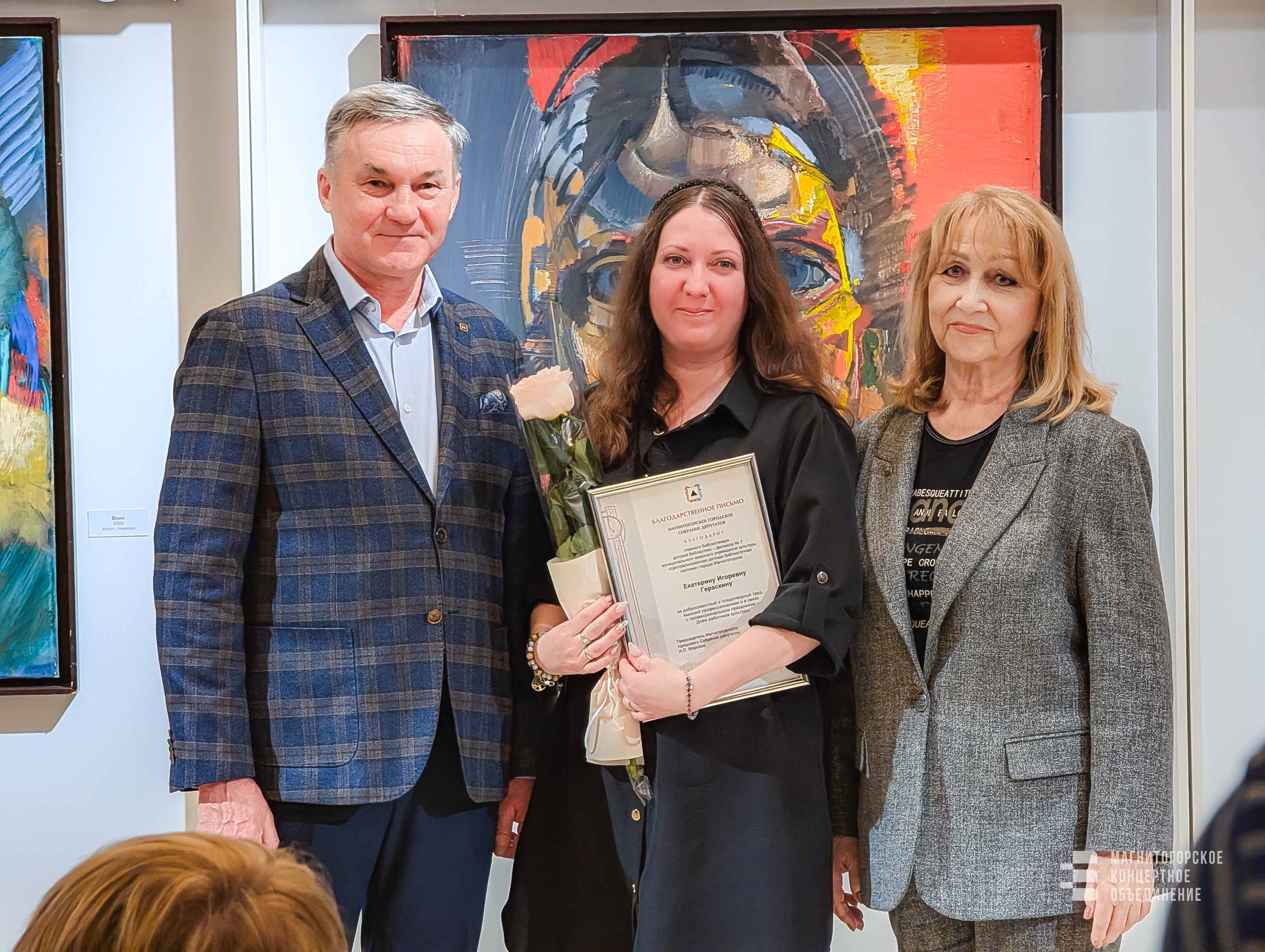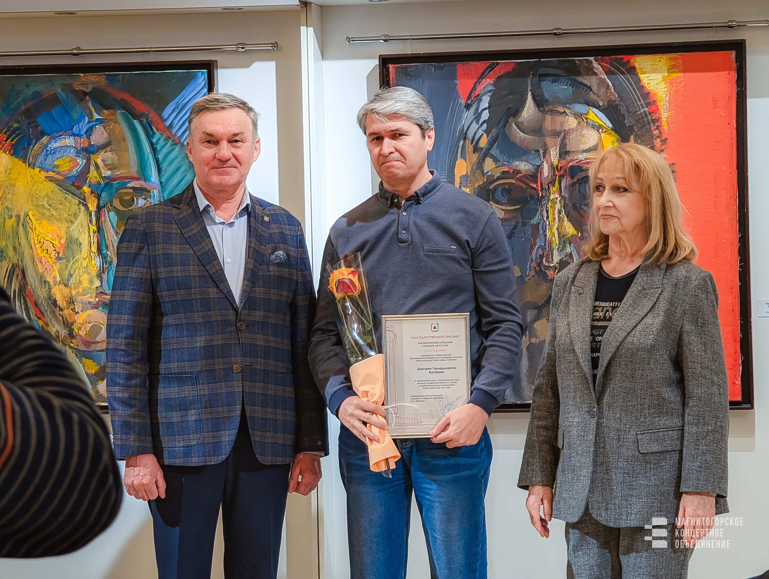 А накануне в Магнитогорской картинной галерее состоялось торжественное вручение наград в честь профессиональных праздников – Дня работников культуры и Дня театра. Почётными грамотами и благодарственными письмами городского Собрания были отмечены те, кто дарит зрителям радость встречи с высоким искусством.