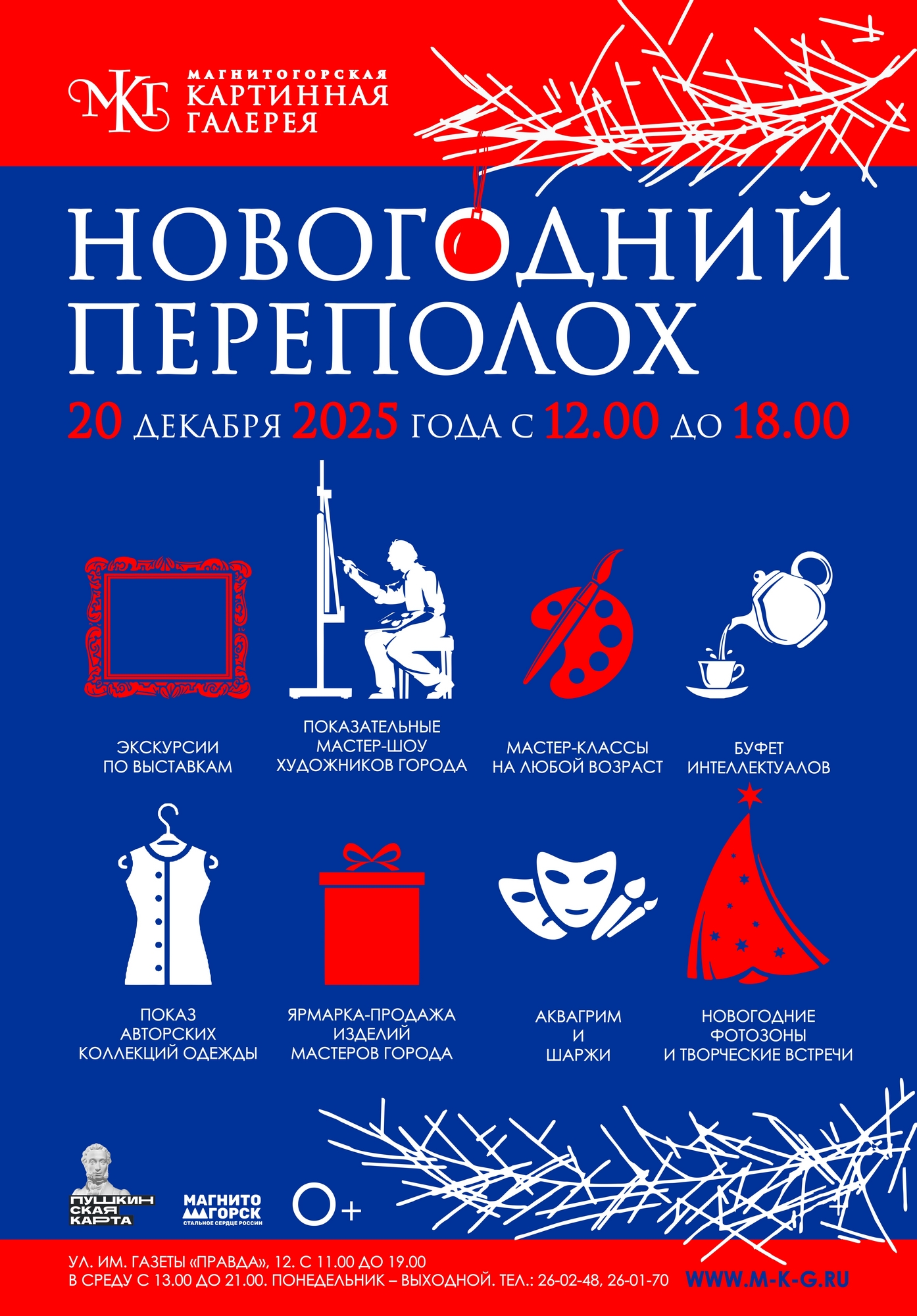 В ближайшую субботу, 20 декабря, в Магнитогорской картинной галерее состоится культурно-образовательное мероприятие. Новый год всё ближе, а значит — время для сказок, волшебства и творчества! Магнитогорская картинная галерея предлагает жителям и гостям города провести один из последних выходных уходящего года в творческой атмосфере. Выставочные залы галереи станут волшебными, наполнятся новогодними тайнами, загадками, песнями, танцами, играми, ведь мероприятие организовано совместно с художниками, творцами и мастерами города.