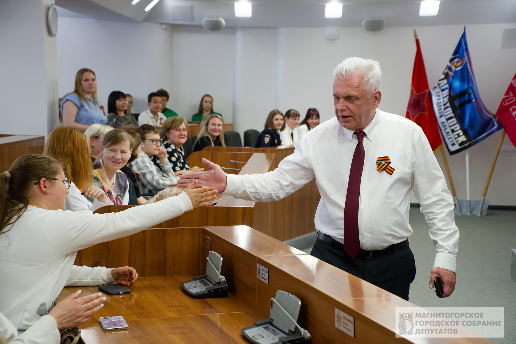 По-взрослому разговор с ребятами вёл и председатель городского Собрания Александр Морозов. Он отметил, что, как каждый гражданин России обязан знать государственные символы, так каждый житель Магнитогорска должен знать герб, флаг и гимн города. С гимнов — сначала страны, затем Магнитки и началась церемония вручения паспортов. Это придало особую значимость событию.