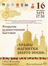 - Выставку «Храмы Магнитки. Золото осени». Лучшие работы городских пленэров по этой теме бережно собрали в Детской художественной школе Магнитогорска (ул. Сталеваров, 26/1). Открытие выставки запланировано 16 октября в 17:30. Работать она будет по 30 октября.