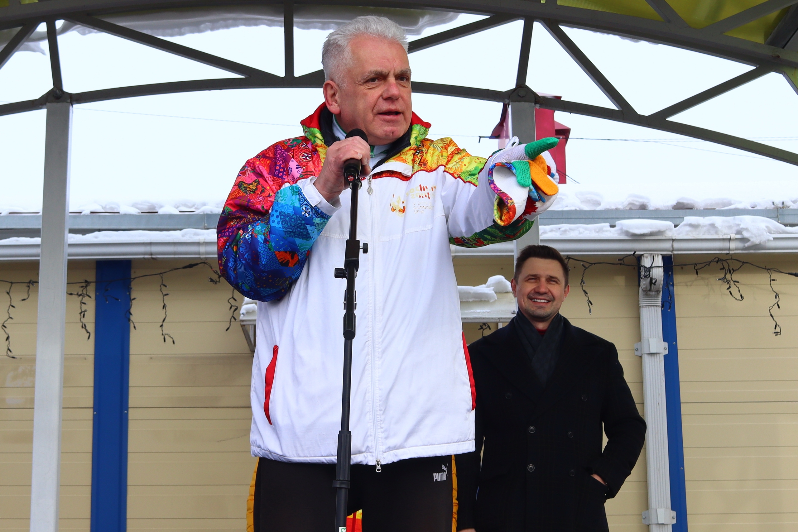 Собравшихся на катке конькобежцев приветствовал спикер городского Собрания Александр Морозов: