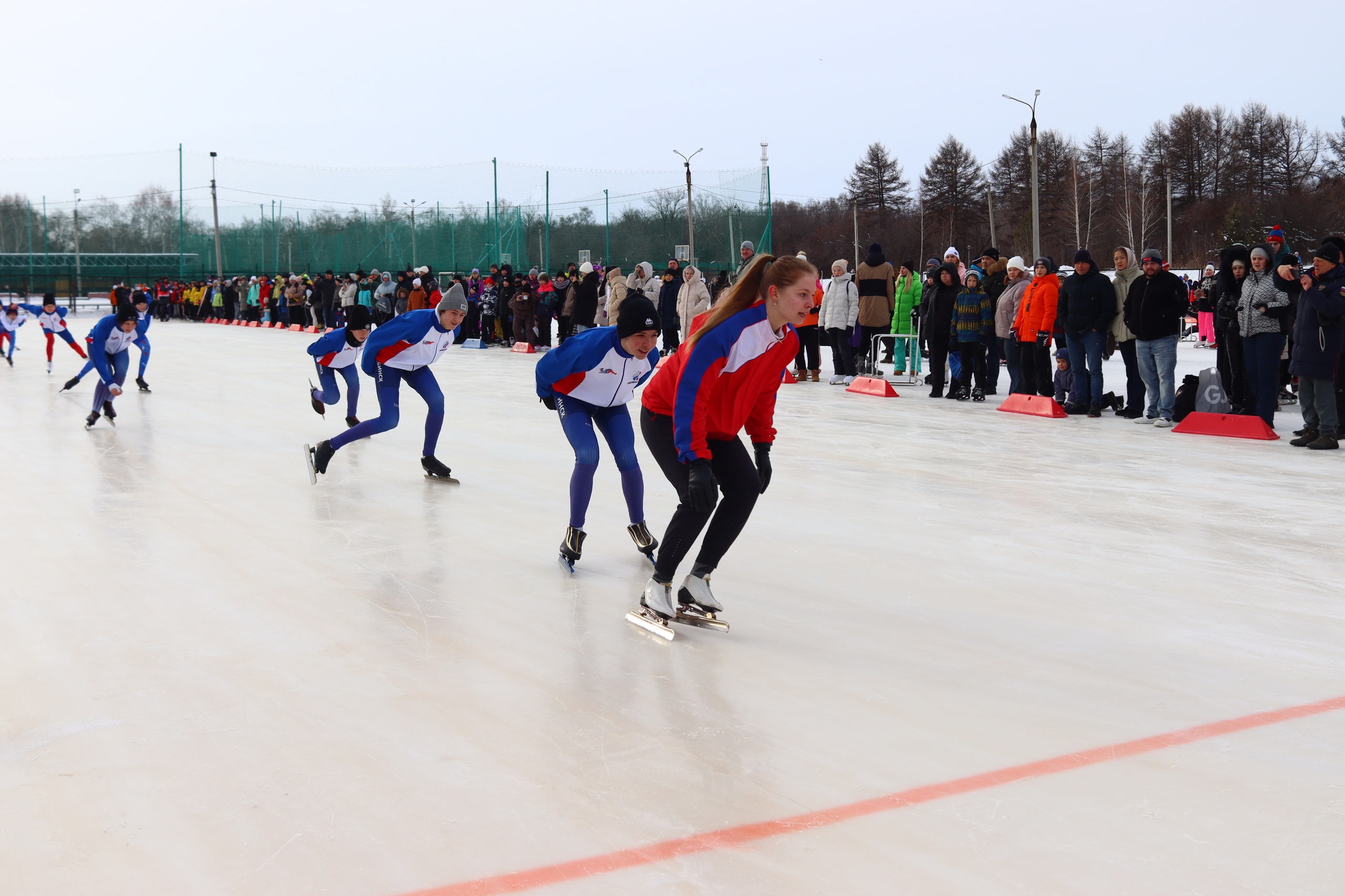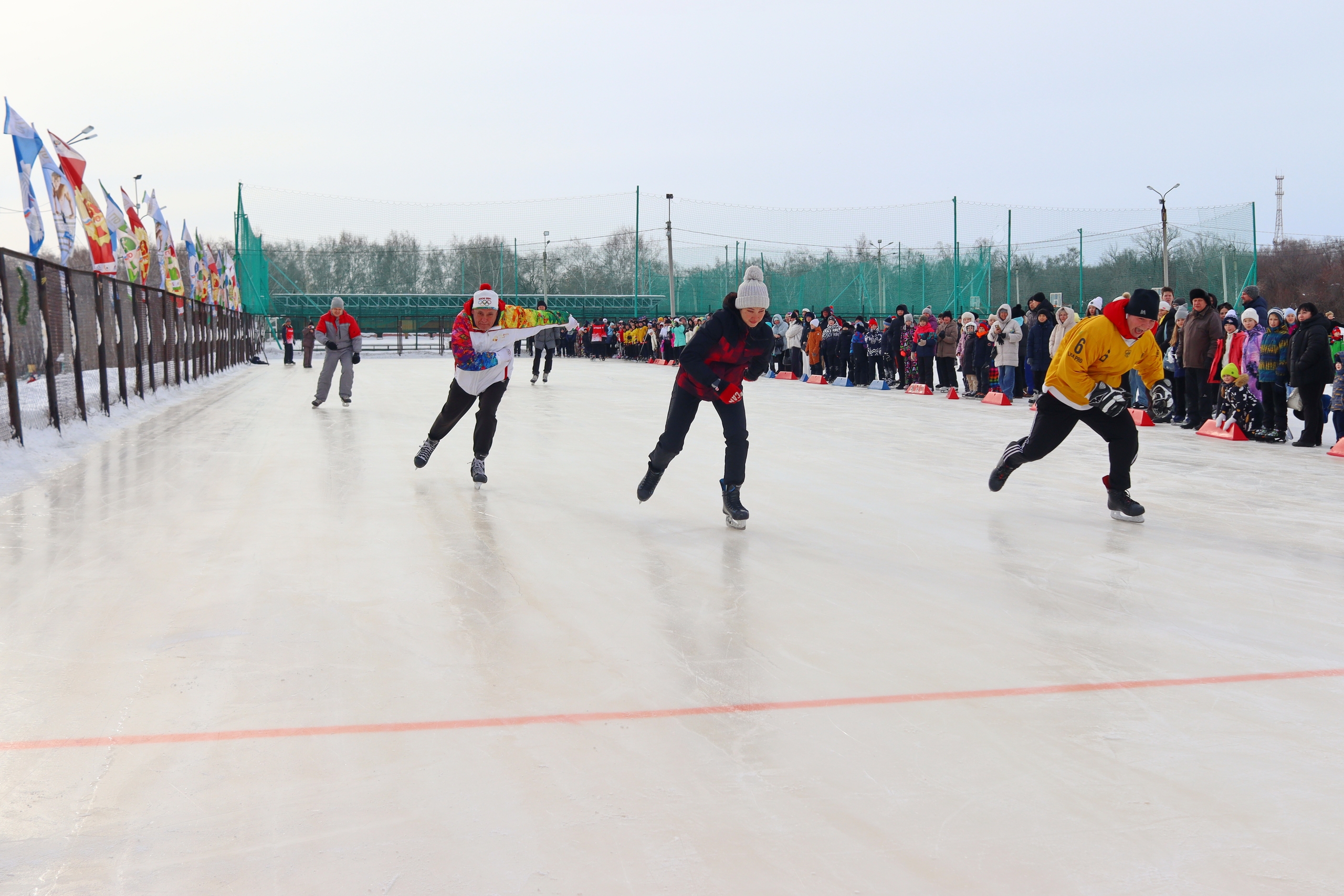 Повторить за спортсменами стремились все участники массовых забегов. В каждой возрастной группе определили победителей и призёров. Получить удовольствие от субботнего дня смогли и те, кто пришли на каток не победы ради. Для гостей организовали бесплатные массовые катания, работали фотозоны с пушистыми аниматорами — белым мишкой, снежным барсом и зайкой. Яркие музыкальные номера от артистов Дворца культуры железнодорожников создавали радостное настроение.