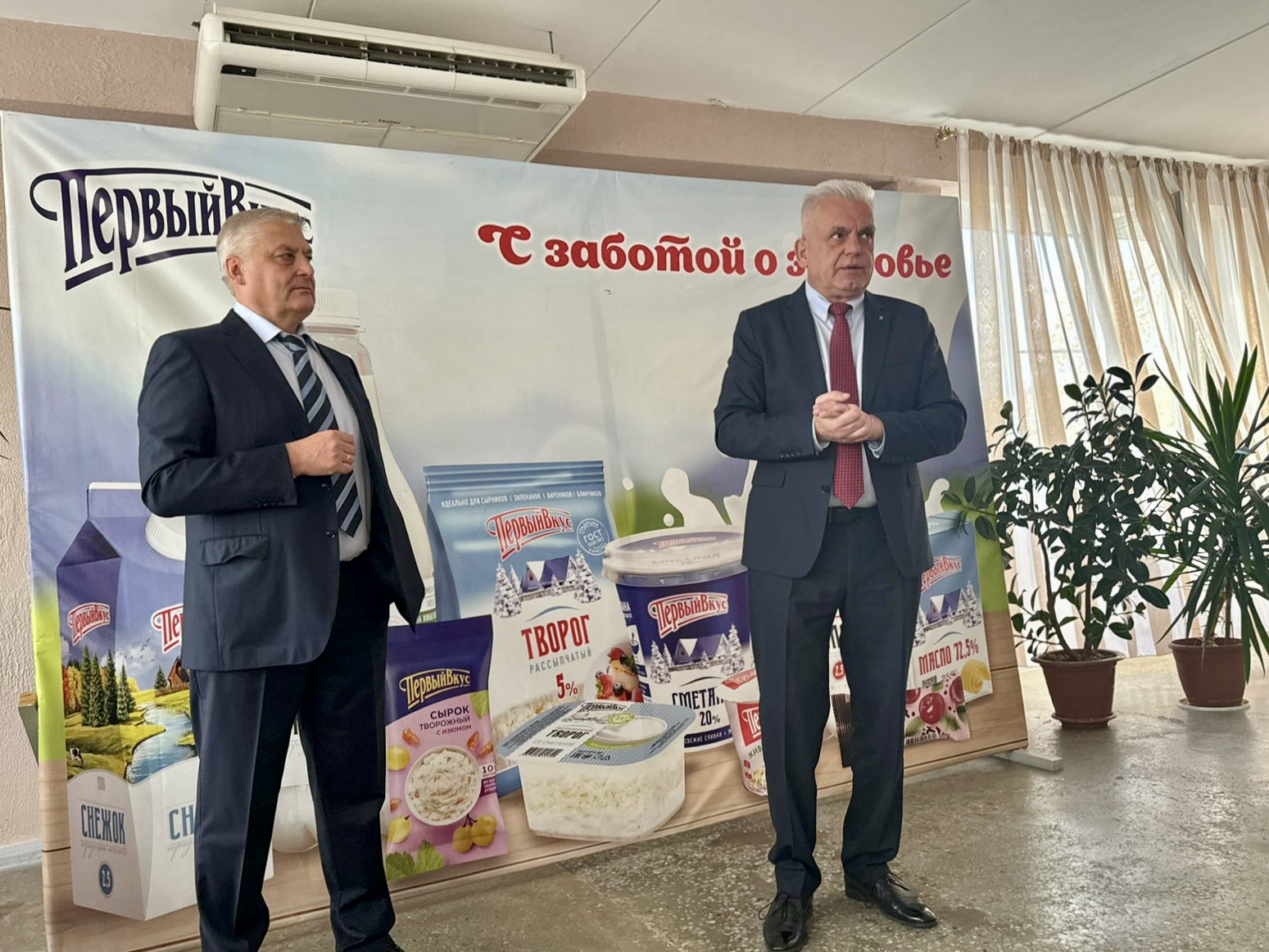 Председатель Магнитогорского городского Собрания Александр Морозов вместе с руководителем предприятия Иваном Сеничевым вручил Почётные грамоты отличившимся работникам. Каждая из этих наград — дань уважения ежедневному труду сотрудников молкомбината, их профессионализму.