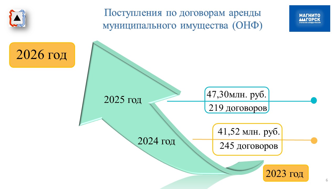 По итогам прошлого года у администрации города насчитывалось 219 договоров аренды нежилых помещений. Поступления выросли на 14,72% и составили 47,63 млн рублей. Рост объясняется перезаключением договоров по рыночной стоимости и увеличением базовой ставки. Что касается земли, то здесь действовало 3 335 договоров аренды на участках общей площадью 4 331 га. Поступления — 631,77 млн рублей.