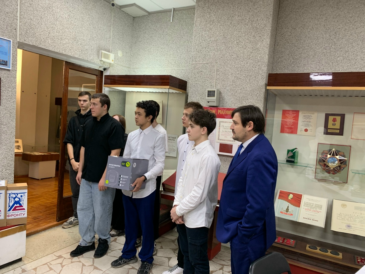 Дмитрий Сергеевич провел экскурсию по новой экспозиции музея истории Магнитостроя, посвященной специальной военной операции, поделился ценным опытом работы в условиях боевых действий, рассказала о вызовах, с которыми сталкиваются бойцы в зоне СВО и о том, как важна для них поддержка тыла.