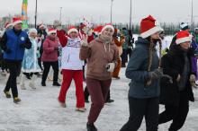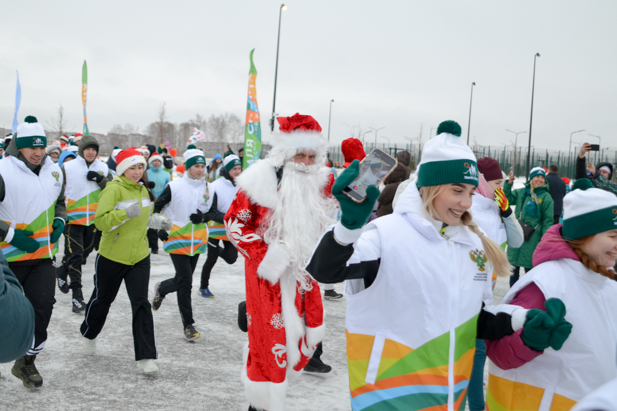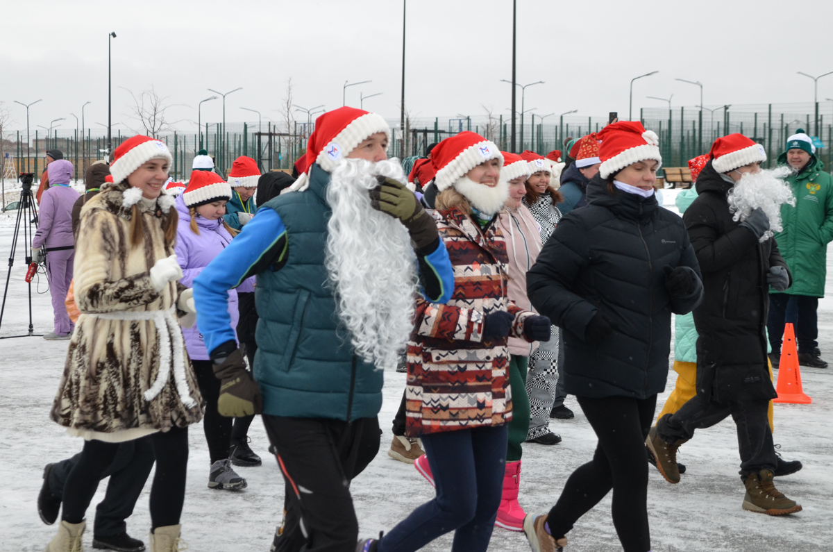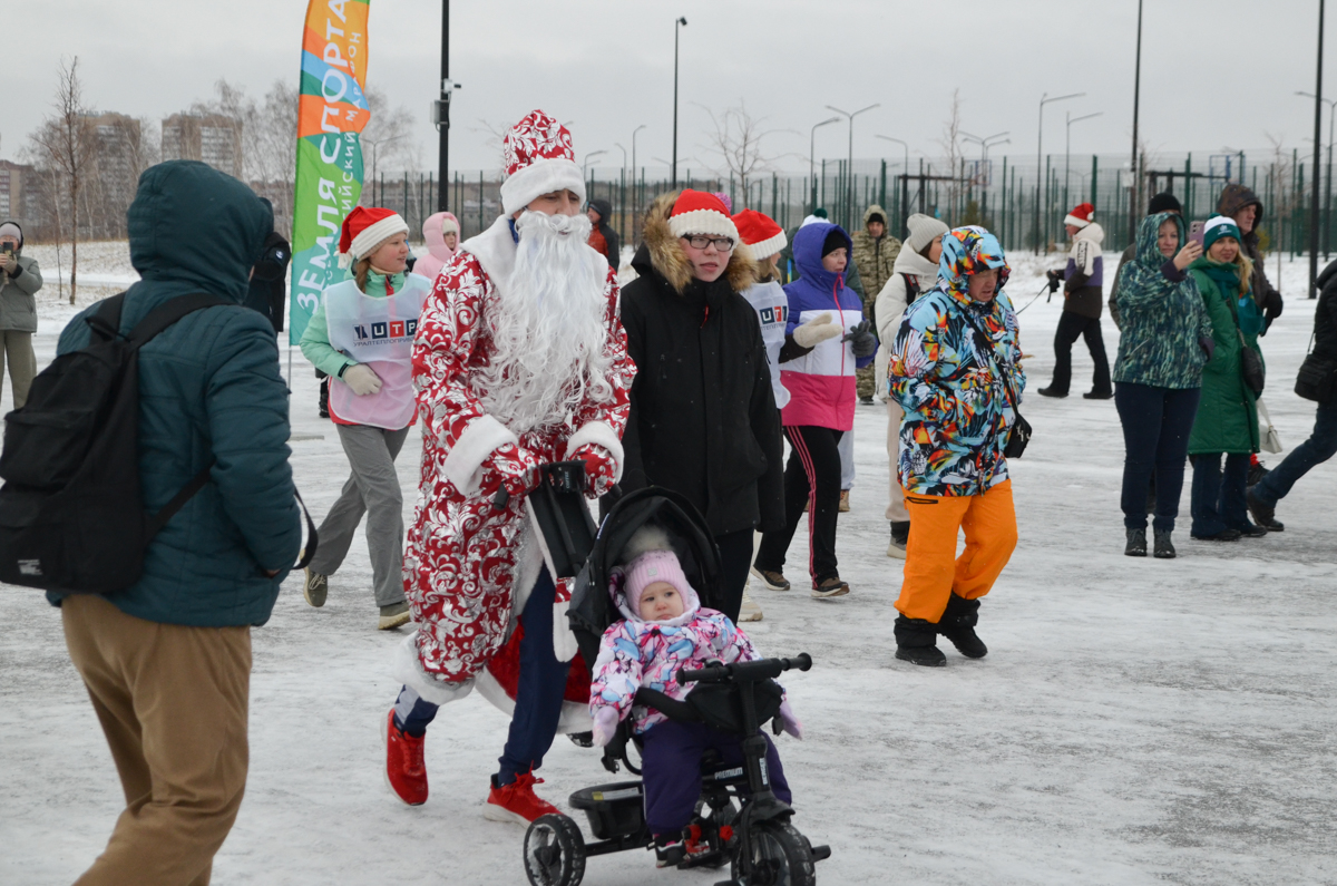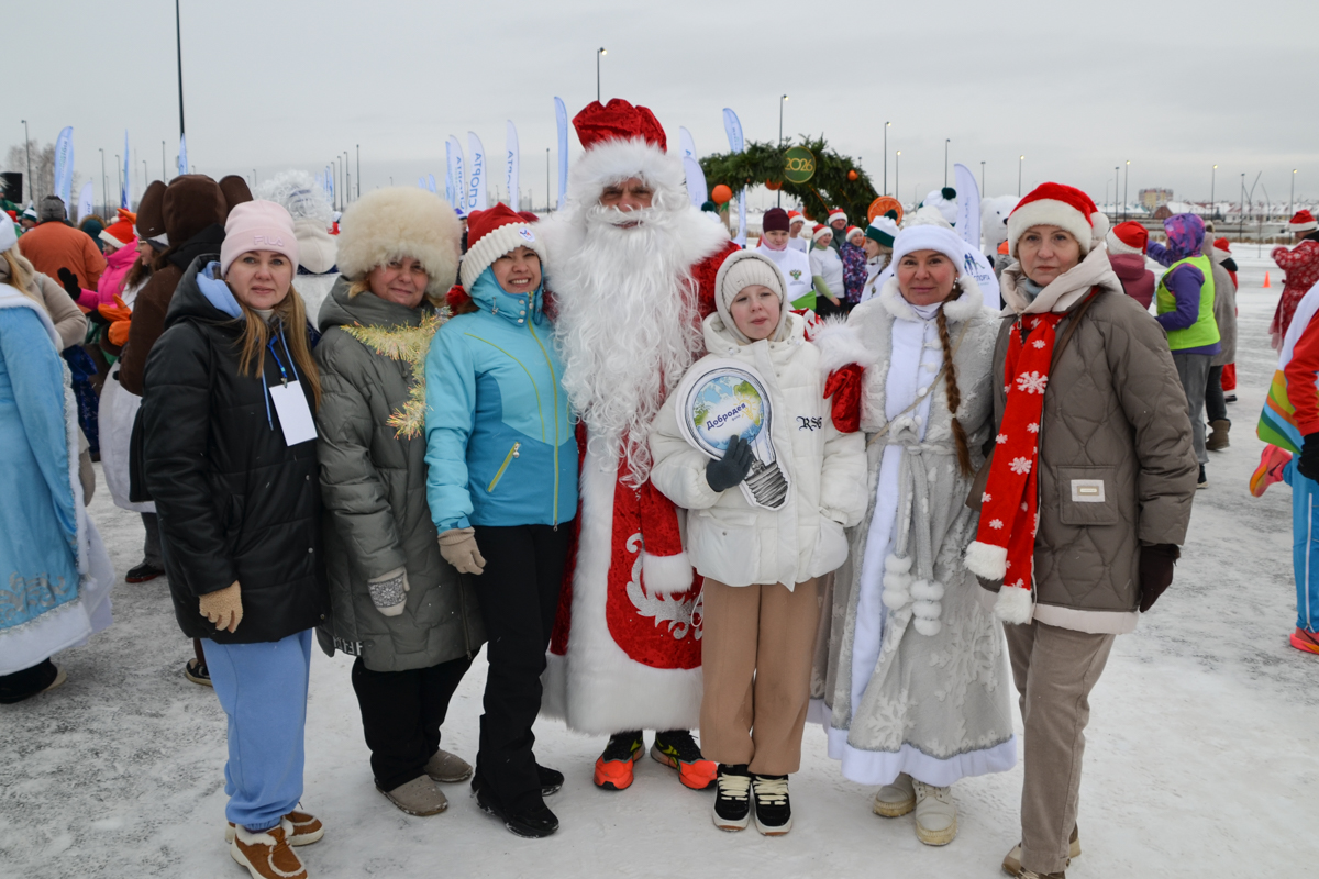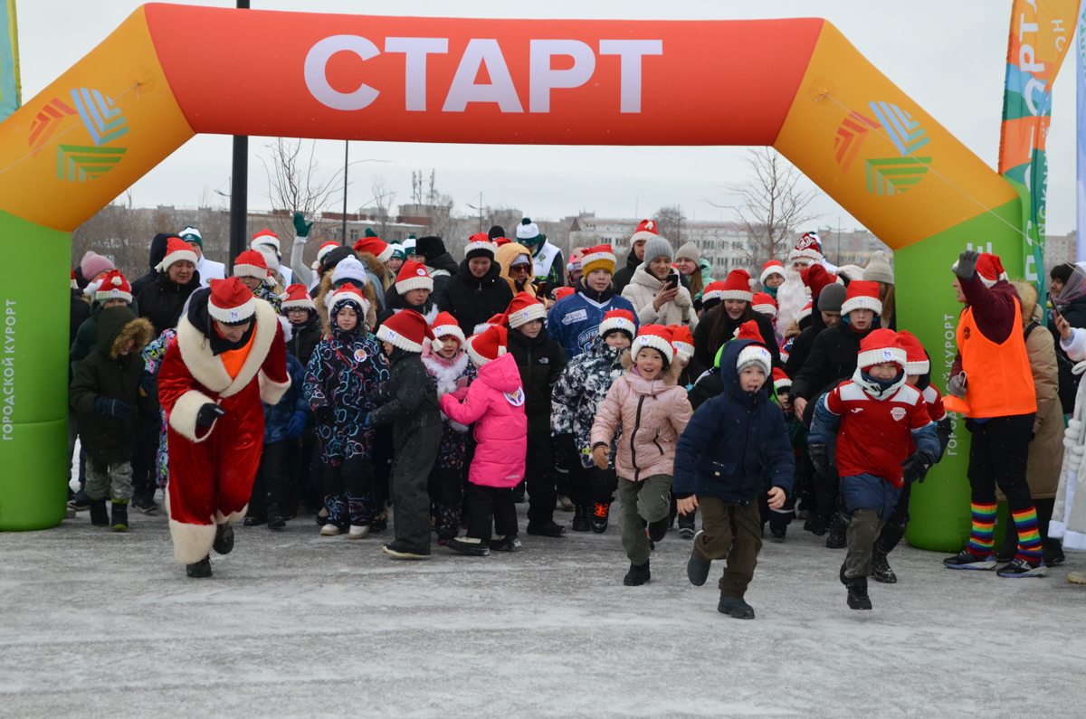 Тем, кто на старт выходил без костюма, тут же вручался красный колпак Деда Мороза. А на финише каждого участника ждала памятная медаль. К слову, и в финишную арку организаторы заложили символический смысл – она стала порталом в наступающий 2026 год, где участники пообещали себе встретиться снова на пятом благотворительном забеге.