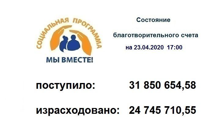 Сбор денежных средств на благотворительный расчетный счёт «Мы вместе» продолжается. Каждый может присоединиться к акции и оказать посильную помощь тем, кто в ней крайне нуждается!