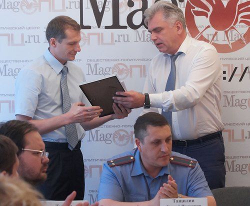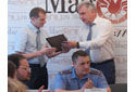 На пресс-конференции был и торжественный момент: Ивану Соломину и Александру Тишину Александр Морозов вручил Грамоты и денежные премии горсобрания за активную работу по борьбе с распространением наркотических веществ.