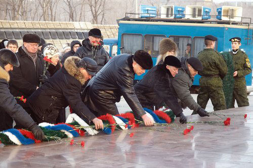 Горожан с праздником поздравили глава Магнитогорска Евгений Тефтелев, спикер МГСД Александр Морозов, начальник УМВД Магнитогорска Михаил Иванов и другие. Традиционно в этот день к подножию мемориала была возложены гирлянда и букеты цветов. Минутой молчания собравшиеся почтили память тех, кто погиб, защищая Отечество.