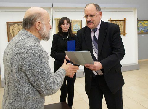 Грамоты городского Собрания и денежные премии за активную жизненную позицию, большую работу в изостудии, направленную на повышение духовной культуры и просвещение горожан вручены художникам Владимиру Климанову и заслуженному работнику культуры РФ Владиславу Аристову.