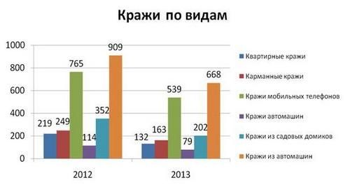 Наибольшую долю – 63% всех имущественных преступлений составляют кражи. Их число уменьшилось на 36%. Преступность в подростковой среде также снизилась - на 16%. Стабильной остается оперативная обстановка в общественных местах и на улицах.