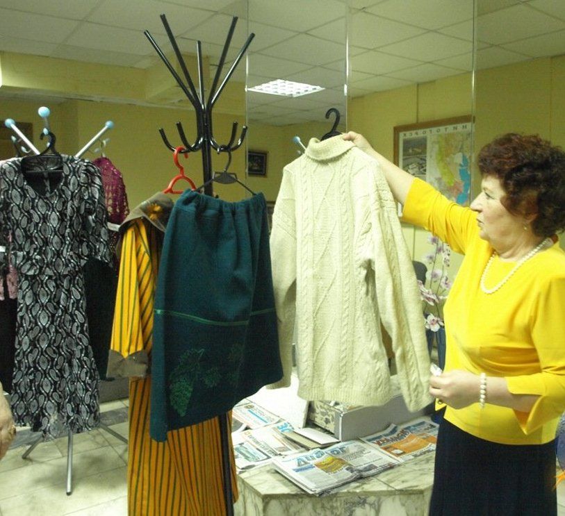 В ходе беседы выяснилось, что хозяйка, принимавшая гостей, председатель ТОС № 14 Людмила Михалева и сама потрясающе умеет шить, она также представила на экспозиции свои работы.