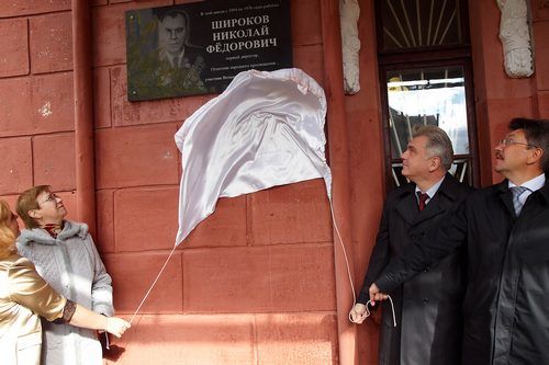 Почетное право открыть памятную доску было предоставлено председателю горсобрания, выпускнику этой школы Александру Морозову, дочери Николая Широкова Ирине, заместителю главы ленинского района Игорю Перелыгину и начальнику управления образования Виктору Хохлову. Символично, что это событие состоялось в день профессионального праздника учителей и, как отметил в своем выступлении спикер, это первая в городе мемориальная доска, увековечившая память о выдающемся педагоге.