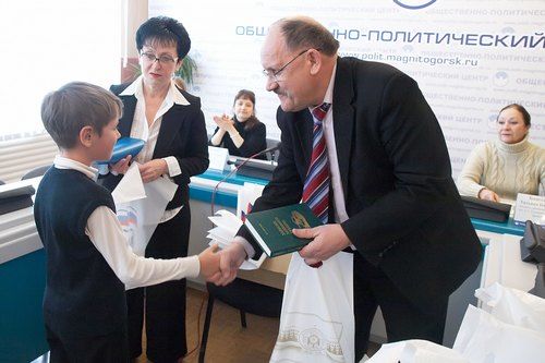 Победители и организаторы получили подарки от городского Собрания. Книги о магнитогорцах - героях Советского Союза помощник председателя МГСД Сергей Топорков вручил главному редактору интернет-журнала «Свой взгляд» Елизавете Сокол, научному сотруднику краеведческого музея Виктору Котлову, учителю школы №36 Наталье Русяевой, учителю школы №20 Валентине Семёновой.