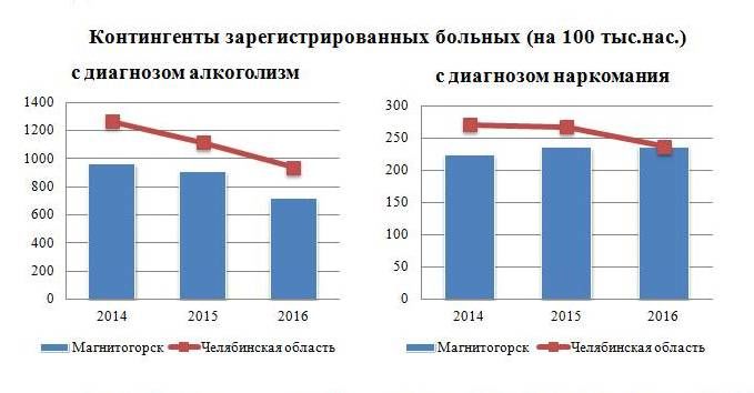 Немного статистики. В Магнитогорске зарегистрировано 4649 больных наркологическими расстройствами после употребления психоактивных веществ, в том числе алкоголя. Больных наркоманией - 28%, токсикоманией – 4%, женщин - 15%.