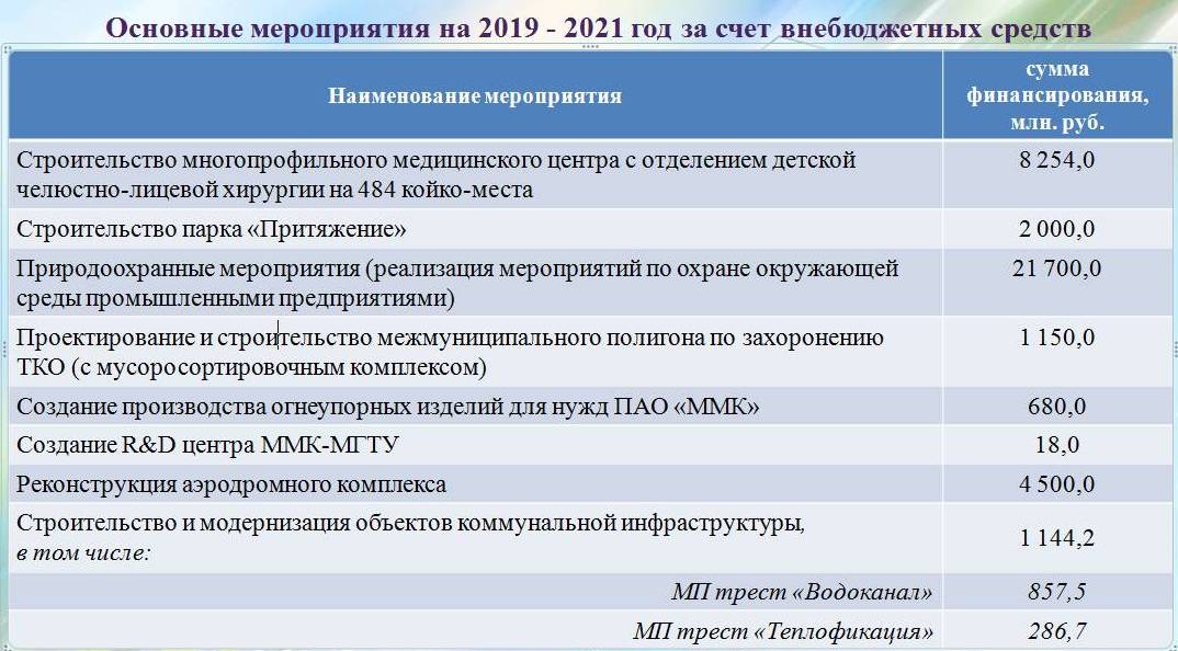 Примером последнего блока являются такие крупные инвестиционные проекты, как парк «Притяжение» на юго-западе города, многопрофильный медицинский центр, природоохранные мероприятия, межмуниципальный полигон по захоронению ТКО с мусоросортировочным комплексом и другие объекты, финансируемые инвесторами.