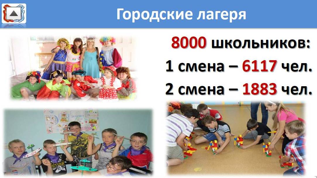 По информации начальника управления образования Натальи Сафоновой, почти 17 тысяч детей от 6 до 18 лет отдохнут в пяти загородных детских оздоровительных комплексах, включая дачу «Горный ручеек» и палаточный лагерь «Скиф»; 8 тысяч девчонок и мальчишек от 7 до 18 лет проведут летние деньки в 50 лагерях дневного пребывания; более 2 тысяч ребят в возрасте 13-17 лет сходят в 105 туристических походов. Во всех школах и учреждениях дополнительного образования будут организованы однодневные туристические походы. В них побывают 5122 подростка