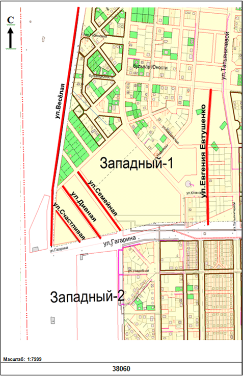 В жилом районе Западный-1 появились улицы со следующими названиями: Счастливая, Веселая, Дивная, Семейная. А еще одна из улиц названа в честь известного поэта Евгения Евтушенко, скончавшегося 1 апреля 2017 года.