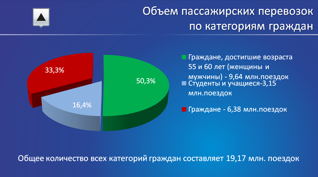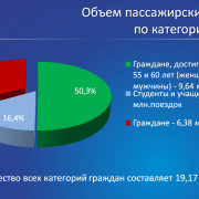 По данным управления транспорта, в общем пассажиропотоке льготников - около 67%. Более половины из них – это граждане, достигшие 55 и 60 лет (женщины и мужчины). За 9 месяцев текущего года они совершили более 7 тысяч поездок.