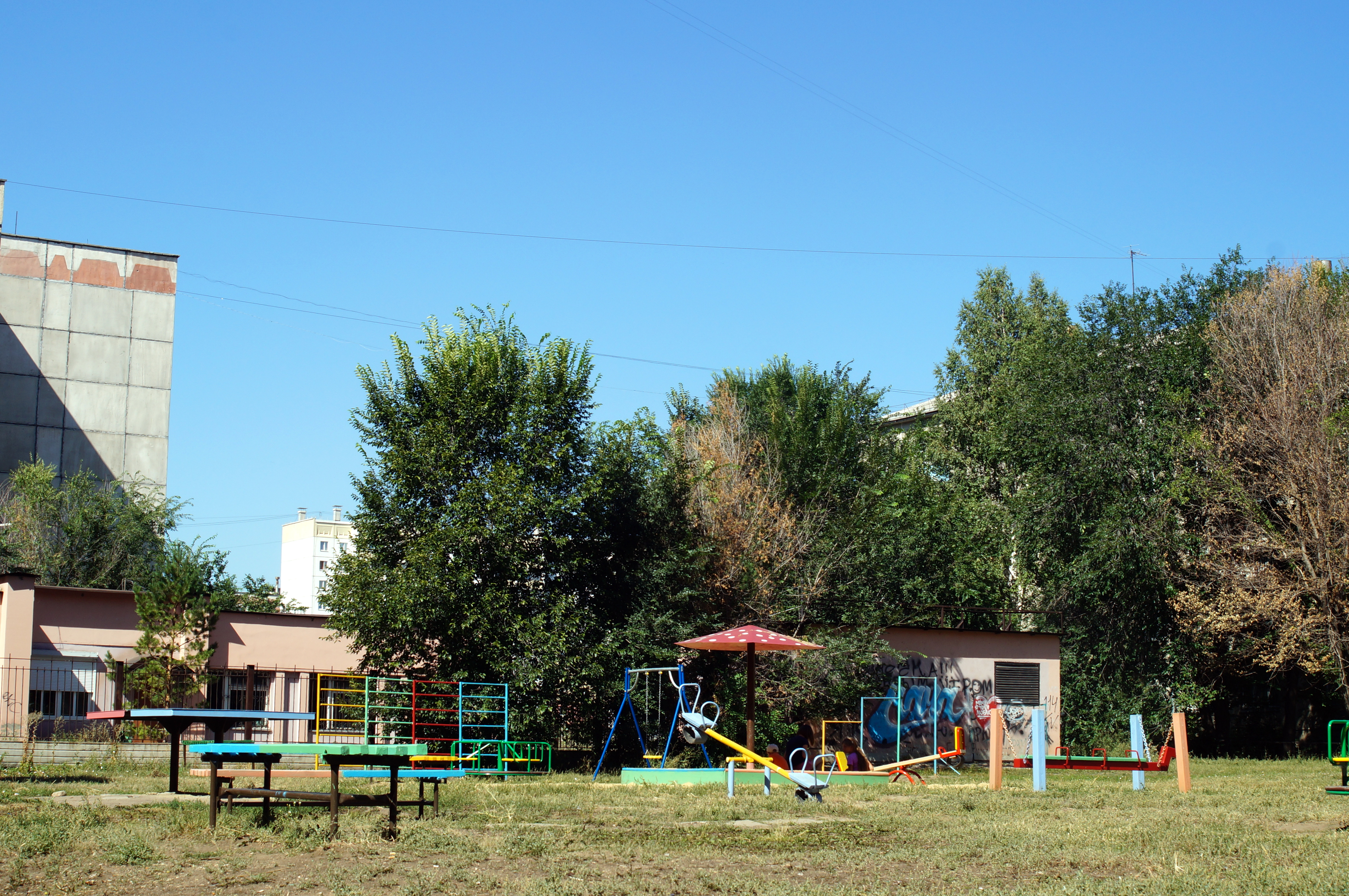 Возле дома №32 по ул. 50-летия Магнитки детская игровая площадка оборудована дополнительными игровыми элементами. У детей появились яркая карусель, качалка-балансир и подвесные качели.