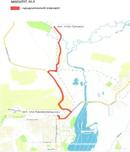 Маршрут №4: пл. Привокзальная – шоссе Белорецкое – ул. Красный маяк – ул. Транзитная – пос. Супряк.