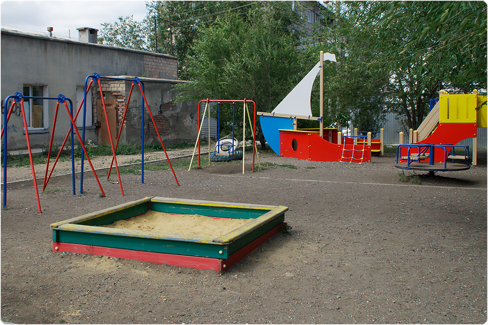 Осталось засыпать песком основание игровой площадки, поставить там лавочку, как просят жильцы.