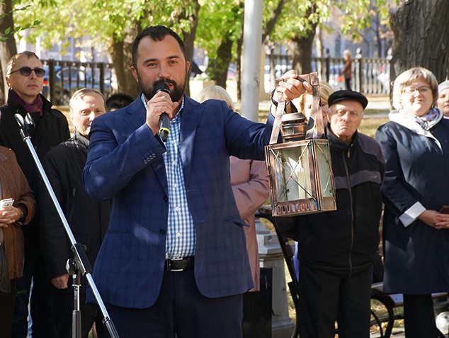 А руководитель литейной мастерской Иван Дубровин пожелал Магнитогорску бесконечных добрых дел и в знак этого подарил главе города отреставрированный фонарь 1943 года с горящей внутри свечой. Кстати пришёлся и подарок краеведа Ирины Андреевой, в качестве которого она принесла свою книгу «Врачи Магнитки».