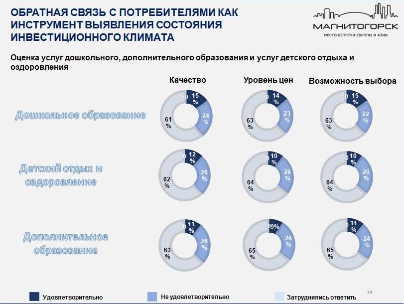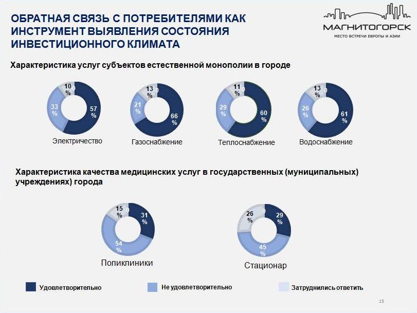 Этот опрос стал своего рода обратной связью с субъектами бизнеса и потребителями. А вообще под инвестиционной привлекательностью, по докладу заместителя главы города Александры Макаровой, понимается обобщенная характеристика совокупности социальных, экономических, организационных, правовых, политических, социокультурных предпосылок, предопределяющих привлекательность и целесообразность инвестирования в хозяйственную систему.