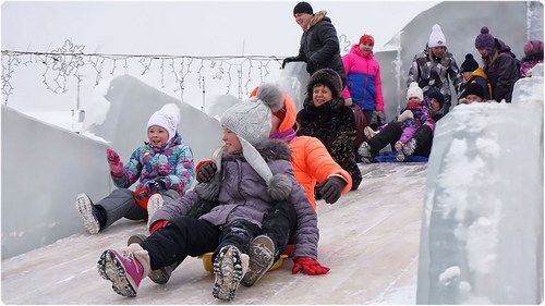 В первую декаду нового года зима будто бы хотела морозами и снегом наверстать упущенное в декабре. И думалось, что красочные ледовые городки в разных концах города будут пустовать. Но не тут-то было… Не взирая на мороз, поплотнее зазавязав шапки и натянув рукавицы, детвора штурмовала ледяные горки днём и вечером, когда особое настроение создавала разноцветная праздничная иллюминация.