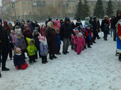 А она не хотела уходить! Нахмурилась, заснежила. Но, несмотря на неласковую погоду, горожане собирались у крылечка, где уже вовсю гремела развеселая музыка. Ведущие праздника – Аленушка и домовой Кузя - зазывали гостей начинать масленичное гуляние.vndfrgir