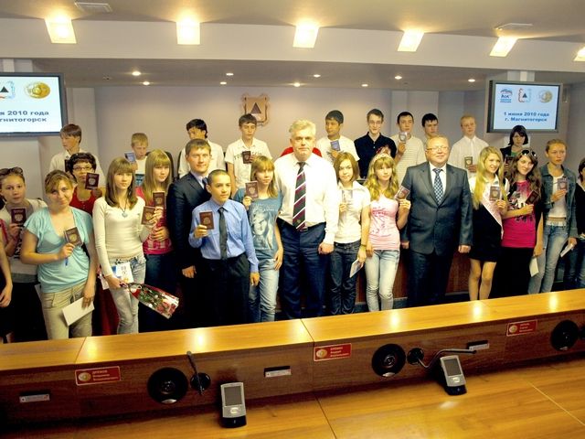 Сегодня в зале заседаний МГСД в торжественной обстановке паспорта получили подростки, проживающие в Орджоникидзевском районе. Книжицы, документально подтверждающие российское гражданство, девчонкам и мальчишкам вручили депутаты Магнитогорского городского Собрания и Законодательного Собрания области.