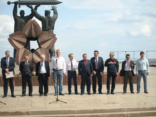 От монумента «Тыл-фронту» стартовала традиционная легкоатлетическая эстафета на приз газеты «Магнитогорский рабочий». В этом году она проходит в 82-ой раз и посвящается 70-летию Победы над фашизмом.