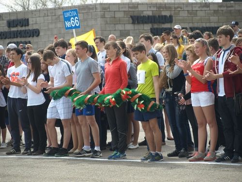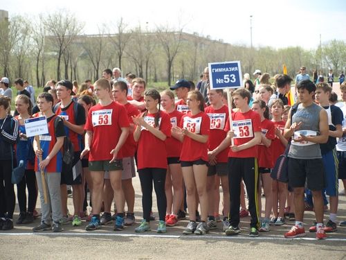 Наряду с мужчинами и женщинами на старт вышли легкоатлеты из 45 школ города, а также воспитанники школы баскетбола и студенты. Праздничное приподнятое настроение участникам создавал детский духовой оркестр, и сверкающие кубки на столе судейской коллегии прибавляли азарта.