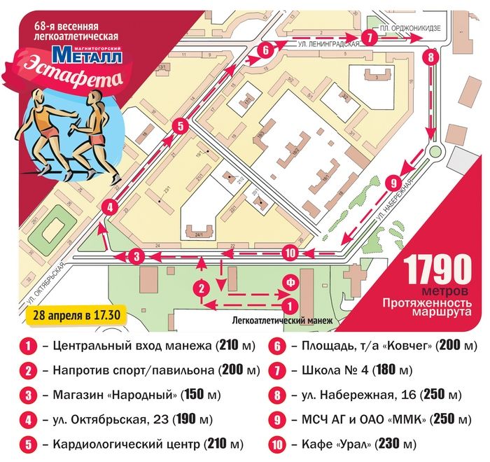 Завтра в городе пройдёт 68-я ежегодная весенняя легкоатлетическая эстафета на призы газеты «Магнитогорский металл».