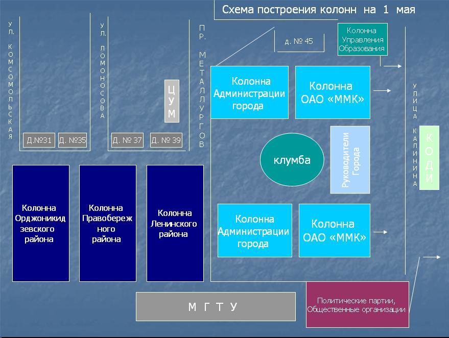 Сбор участников шествия и построение колонны на площади возле МГТУ им. Г.И. Носова и на ул. Калинина начнется в 9.00. К этому времени общественный транспорт будет работать по специальному расписанию, время между рейсами сократится и будет максимально удобным.
