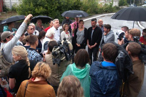 На импровизированном открытии выступили глава города, атташе по культуре генконсульства в Екатеринбурге Анна Поро и сами создатели панно. Разговор проходил на двух языках. Председатель Собрания Александр Морозов общался с гостями на родном для них языке, говорил о важности украшения любого населённого пункта, особенно промышленного города, о необыкновенной скорости реализации проекта, подтверждая слова немецкими поговорками.