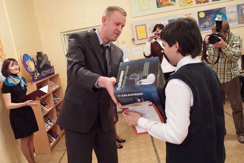 А в центральной детской библиотеке имени Нины Кондратковской был проведён конкурс среди юных читателей на знание истории космонавтики. В нём участвовали как отдельные школьники, так и целые команды, подтверждая, что интерес к теме космоса с годами не угасает. Победителям были приготовлены призы: памятные, сладкие, а главный приз - телескоп победителю предоставил депутат горсобрания Егор Кожаев. В этот же день в библиотеке открылась выставка детских рисунков на космическую тематику и выставка книг под общим названием «Эра космоса».