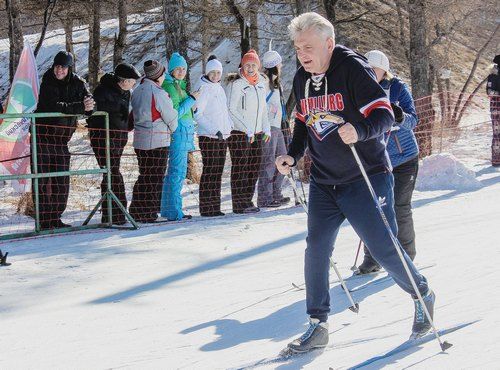 Председатель горсобрания Александр Морозов, постоянный участник лыжных гонок, традиционно посвятил всем присутствующим шуточное приветствие в стихах:
