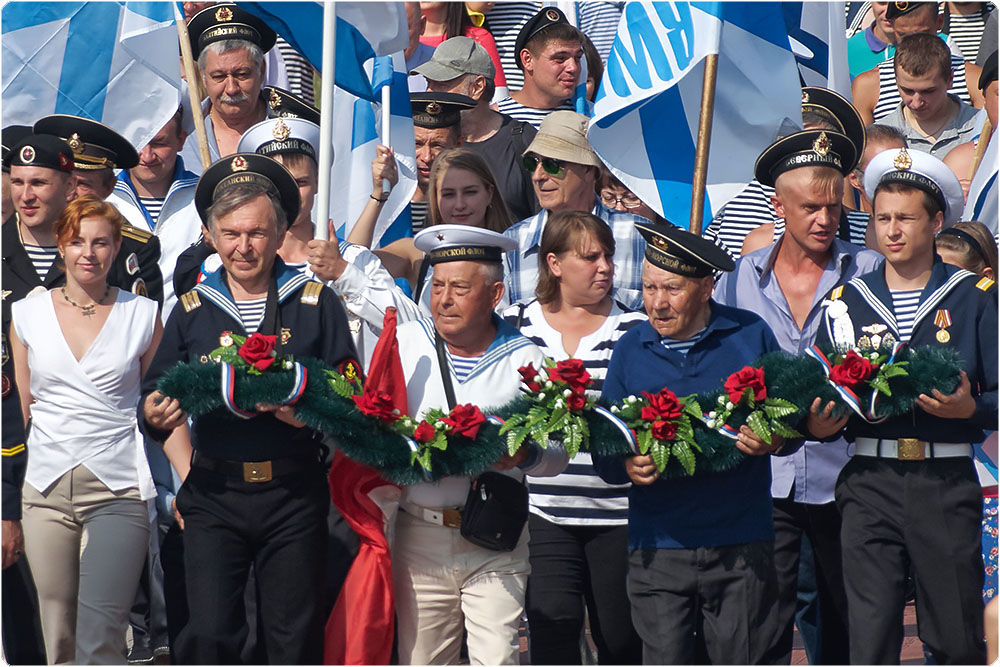На территории ДОСААФ цветы легли к памятному знаку, посвященному морякам-героям российского флота. В этот день здесь можно было отведать настоящую армейскую кашу, увидеть свадьбу в морском стиле и поучаствовать в спуске венка на воду.