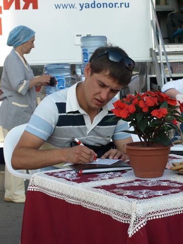 На главной площади у Курантов с 8.00 работала мобильная станция переливания крови из Челябинска. К 10 часам утра кровь сдали уже 30 человек, после полудня через аппараты забора крови прошли шесть десятков горожан. «Это нормальная статистика, - утверждают медики, - как правило, если работать целый день удается забрать кровь почти у двухсот человек».