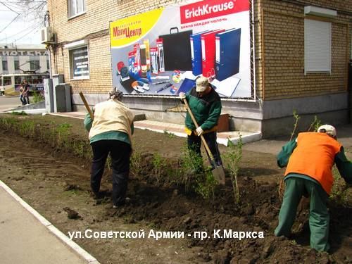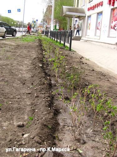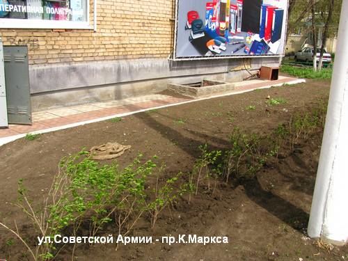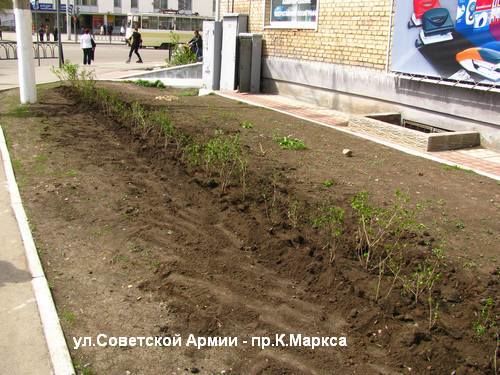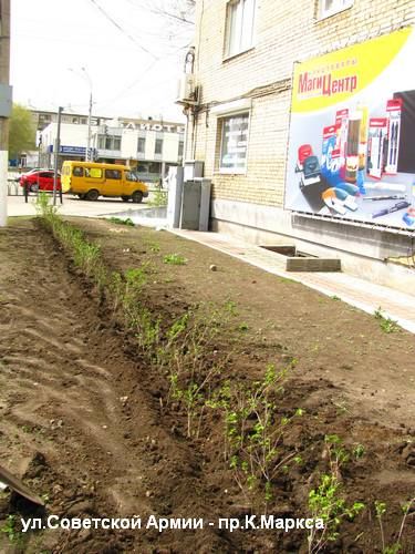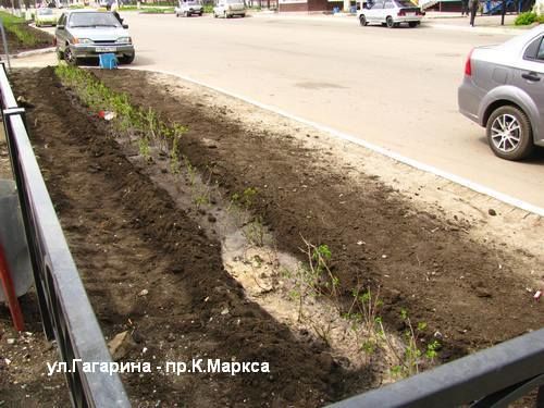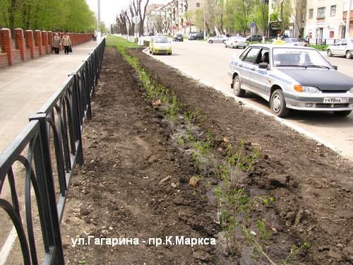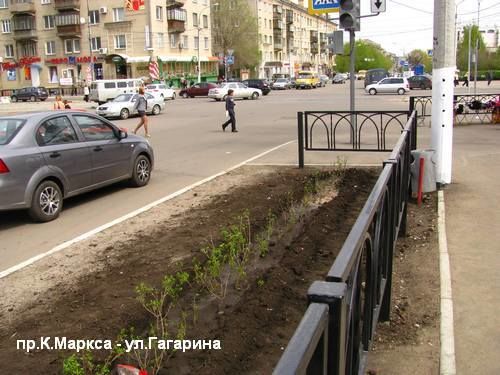 «Перекресток Маркса-Советской Армии, а особенно Маркса-Гагарина: ограждение и бордюры есть, но есть и место, где можно высадить деревья и кустарники…Запланированы? Так высаживайте! А то выглядит как Хиросима. Мы не можем допустить превращения города в каменные джунгли из-за безответственности и разгильдяйства чиновников! Деревья или кустарники немедленно посадить! Зелёный газон сделать!» - потребовал спикер.