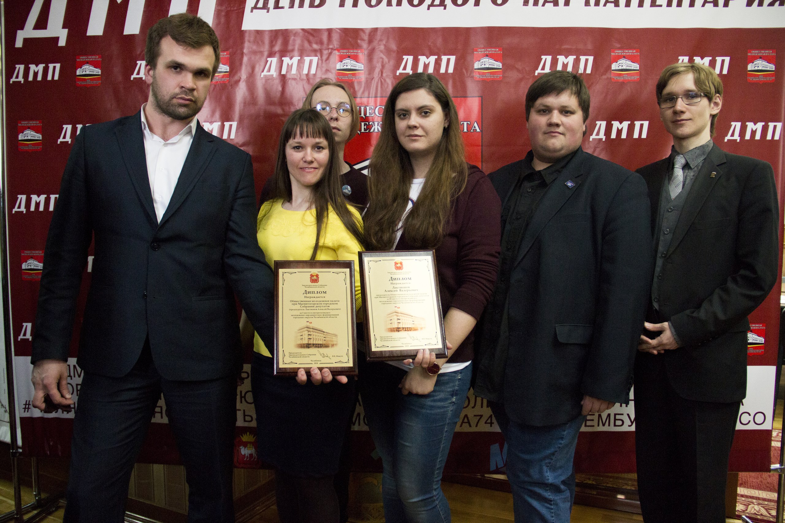 В конце апреля на торжественном заседании Молодёжной палаты при Законодательном Собрании области была награждена Общественная молодежная палата при Магнитогорском городском Собрании депутатов и ее председатель Алексей Лактионов.