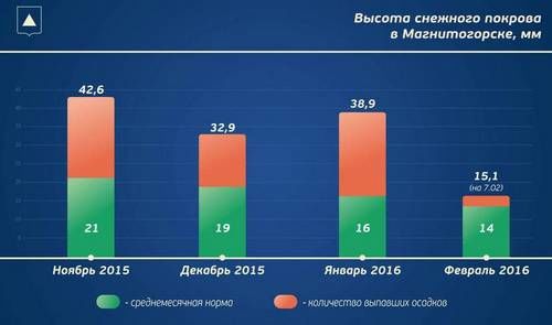 По информации заместителя главы города Олега Грищенко, с ноября по январь в городе выпадало по 2-2,5 ежемесячной нормы снега. Февраль уже выполнил свою месячную норму осадков. Такого не наблюдалось почти 30 лет.